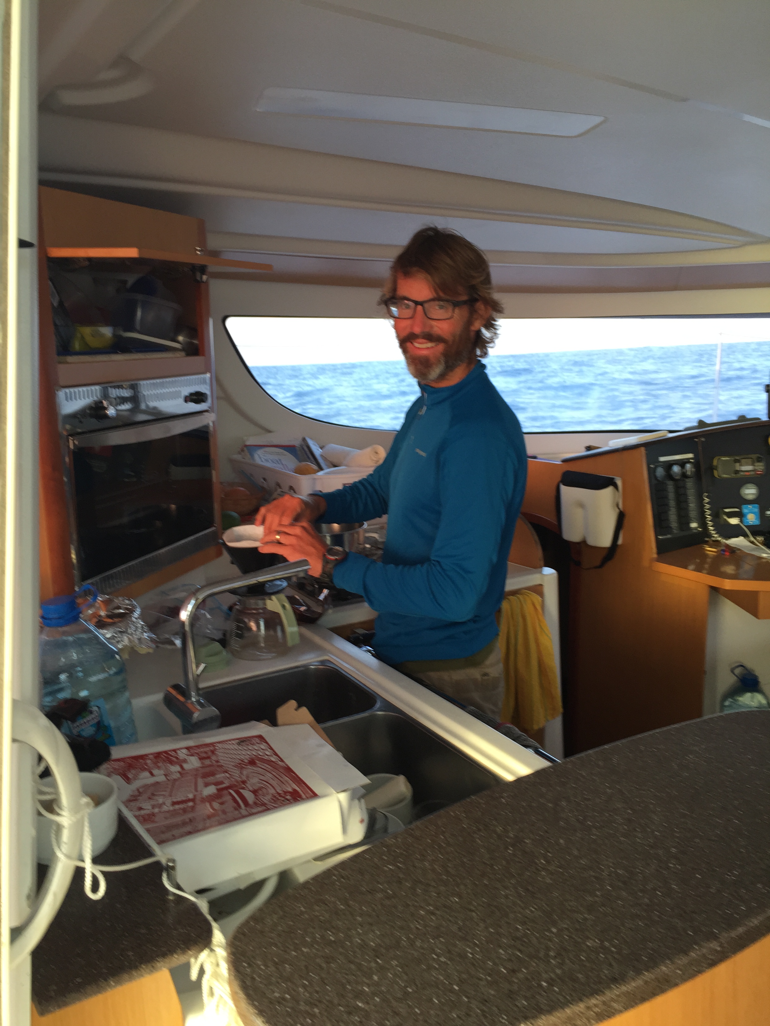 The sunrise saw Jimmy and me at the helm, still offshore and out of sight of land. I was taking over for him after his 4am shift and he wanted to watch the sun come up with me. I was so proud of him. When I left him at the helm at 4 and went to bed, it struck me that this was the very first time in my life that I fully, 100% trusted him to take on a very adult responsibility. Jimmy’s got this, I thought to myself as I fell asleep. And he did. It’s amazing what young people can accomplish when given the responsibility. It’s something I’ve learned on this trip and want to take back with me.
