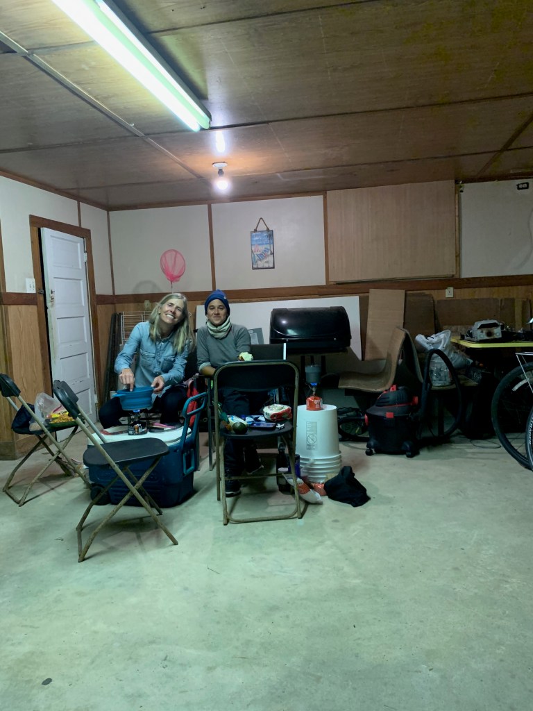 We cook dinner on overturned plastic buckets and eat on folding chairs, the wind making it impossible to cook outside.  Tonight’s dinner discussion is centered on Adela’s plans.  This bike trip is part of her project to explore America’s people and viewpoints beyond the major coastal cities leading up to the Presidential Election.  She’s been photographing and interviewing people daily, a practice that’s been illuminating.  For example, I listened to the guy who offered us the propane heater tell Adela that Donald Trump’s leadership on the coronavirus had no impact on his support for the President.  “The virus is in the Lord’s hands, Trump’s got nothing to do with it.”  I don’t agree, but that doesn’t mean that we can’t be civil to each other and attempt to understand each other’s views.  That’s how beliefs evolve and lasting progress is made in a democracy.  I’m thankful for this trip and Adela’s work that helped reaffirm this fact for me.  I wish all of us had more opportunities to engage with people with whom we disagree.  Outside of our self-constructed bubbles.