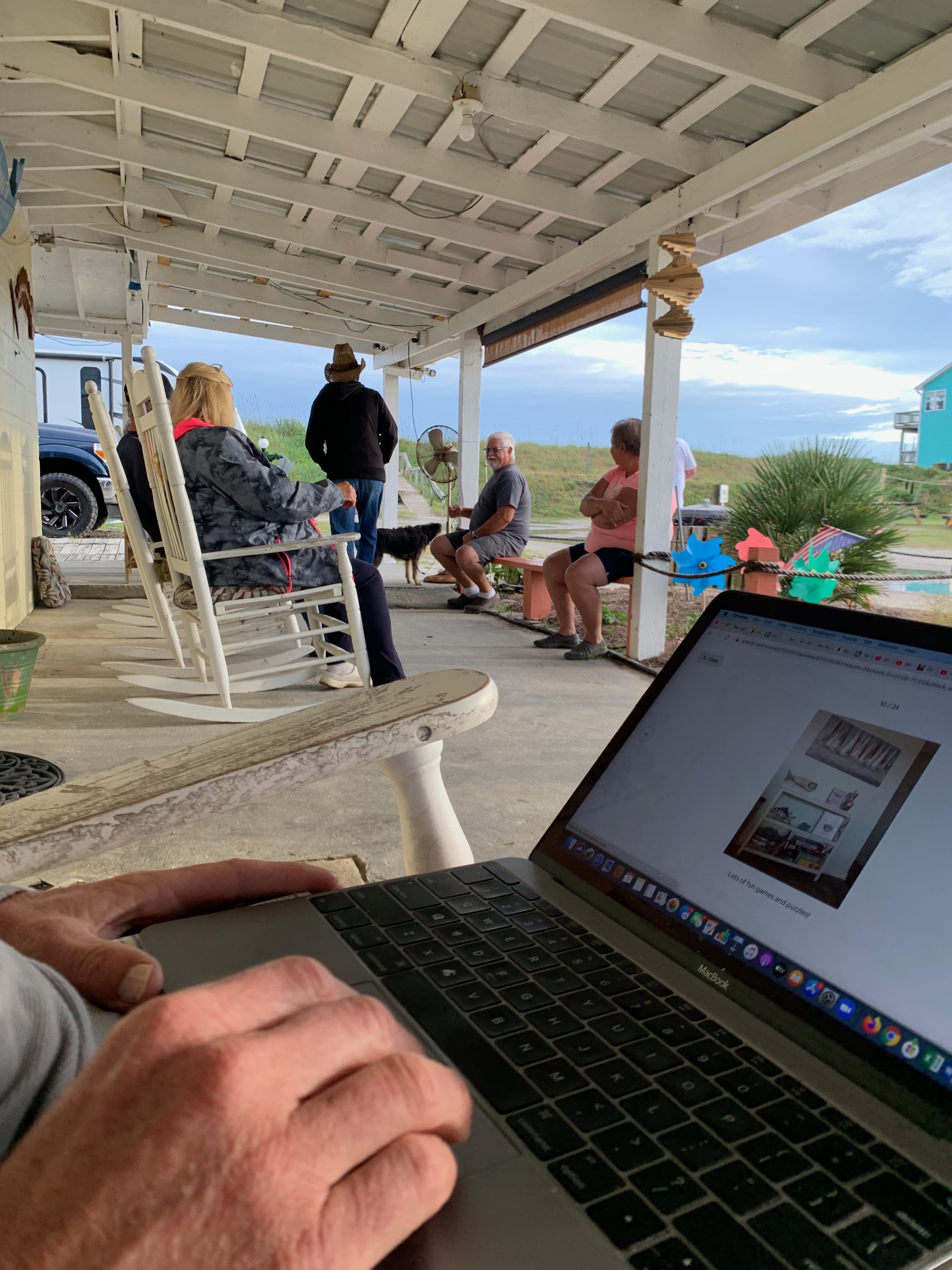 After the tent is up, I head to the porch, settling into a rocking chair with dirty cushions.  The location allows me to grab Wendell’s wifi so I can search for a place for Sarah and I to stay in Wilmington the following night, my birthday.  But I mostly want to shoot the breeze with this group.  One of the gentlemen, a retired plumber, has on denim overhauls.  Another a cowboy hat. I feel like I’m in an episode of the Andy Griffith Show.