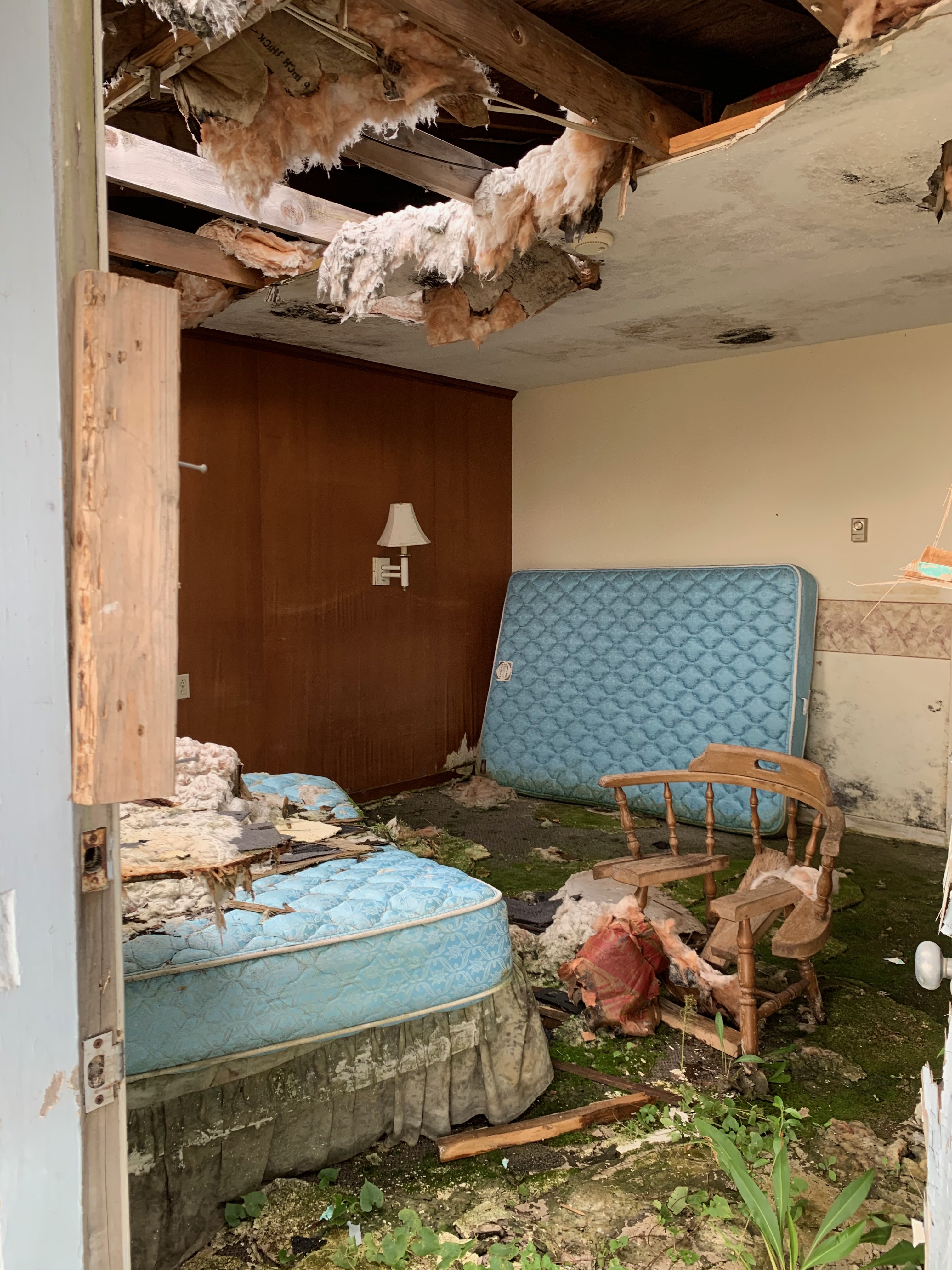 “Holy crap is that it?” Sarah says as we ride beyond the ferry entrance and a dilapidated motel comes into view.  The motel is falling down.  Many rooms don’t have doors.  Adela can’t help but laugh out loud.  The roof is caving in and torn off in several places.  We peek in one open door and see a mattress covered in mold.  Oh boy.  Thankfully, as we ride a bit further, we notice that what appears to be a new motel has been built directly behind this monstrosity.  There is no signage.  Is that the resort?  Sarah masks up, goes into the Bay Breeze Bar, and comes out with the answer.  Yes, that’s the new motel that was built after Hurricane Dorian destroyed the old one.  $78 for the night.  “Sold!” I say.