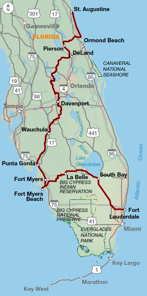 I scanned the Adventure Cycling Association route page for ideas, and there it was:  The Florida Connector.  A winding route across the state of Florida.
